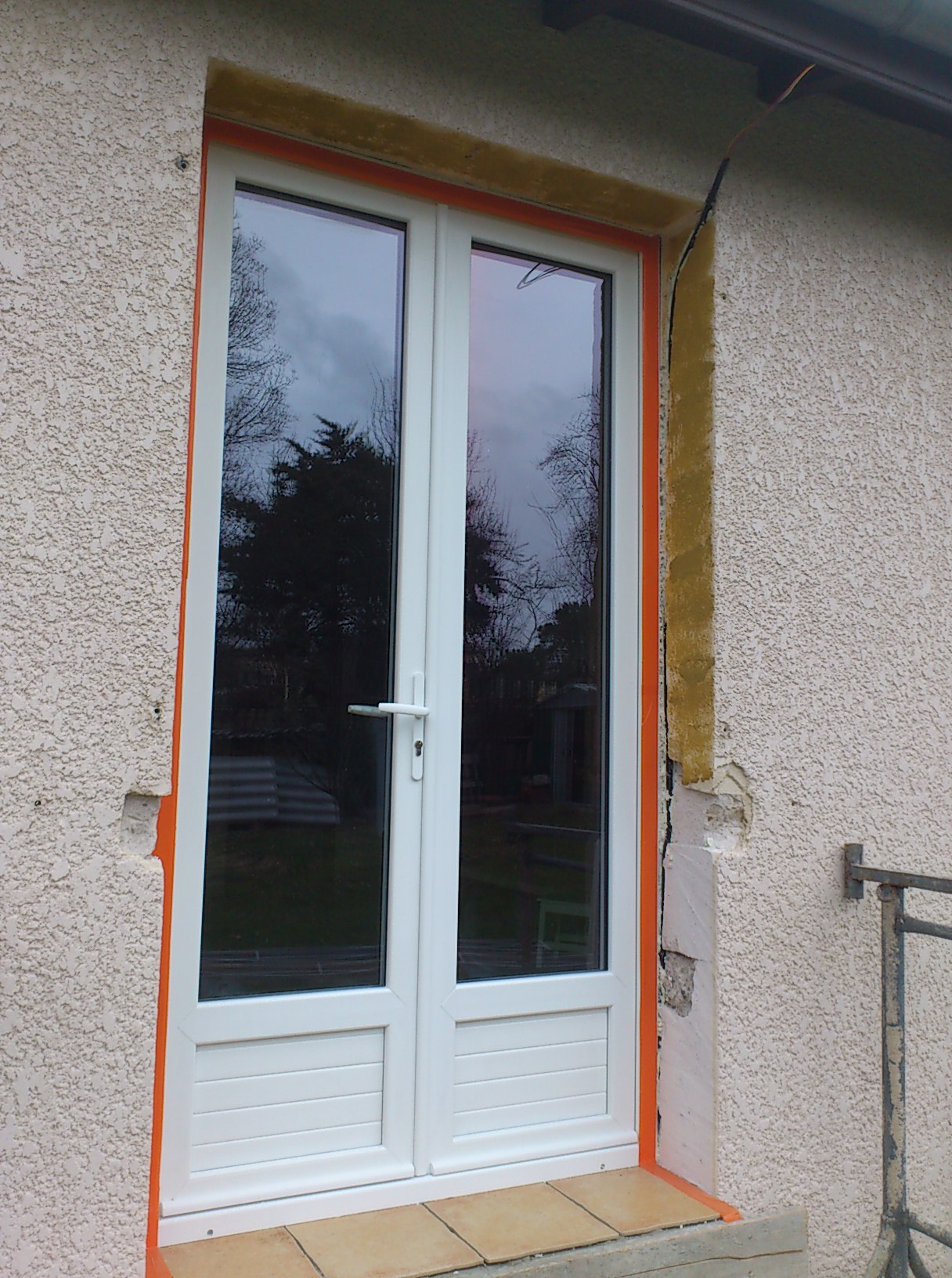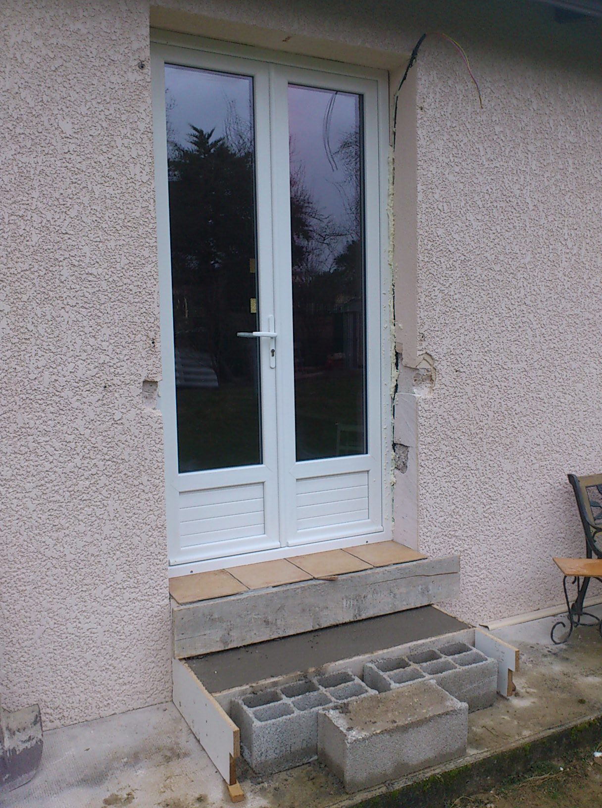 Divers travaux Remplacement d’une fenêtre avec volets bois, par une porte fenêtre et un volet roulant. Réalisation de marches d’accès. Décoration intérieur Réalisation d’un abris bois